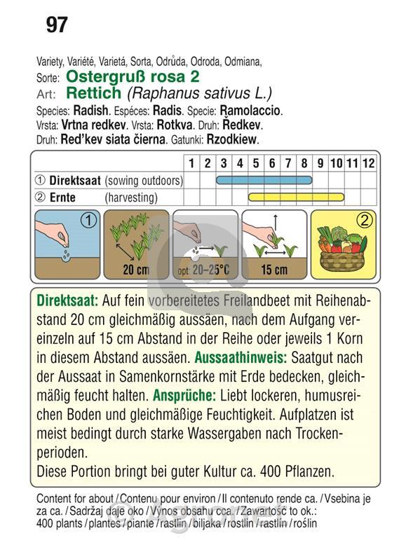 agronet.hr Rastline in semena Semena Semena zelenjave Korenovke Redkvica in redkev Redkev rosa 2 Cijena:1,45 € Koda:330220060 Težina:0,01kg DOBAVITELJEVA ŠIFRA 1:97Marka:AustrosaatEAN:9001415530978 Zaliha: na zalihi U košaricu KOS