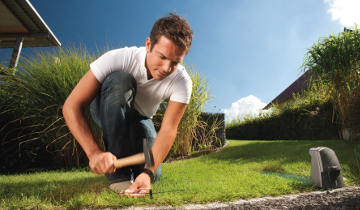 Nevidna meja Mejno žico je treba samo enkrat napeljati okrog območja košnje in s tem je zagotovljena zanesljiva omejitev delovnega območja. |